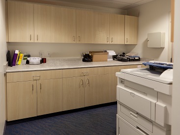 The importance of the photocopy/print room is often overlooked, but the common spaces of an office environment influence the flow of work and workplace efficiency to a significant degree. These spaces have the ability to open things up or become an architectural bottleneck.