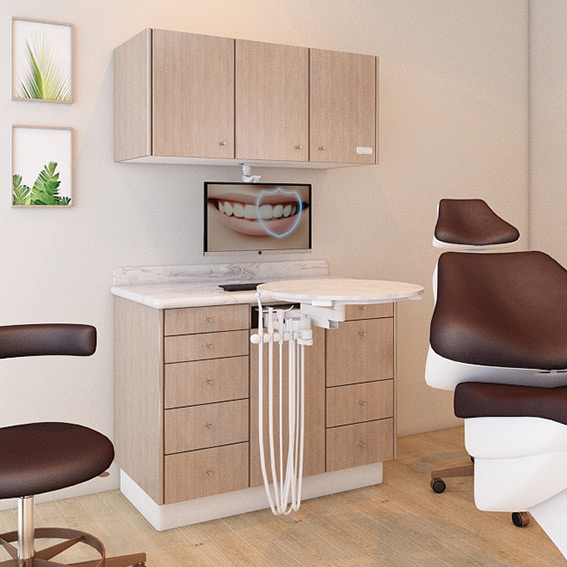 May be configured with one sink on the left or right side of the main treatment centre, or with two sinks